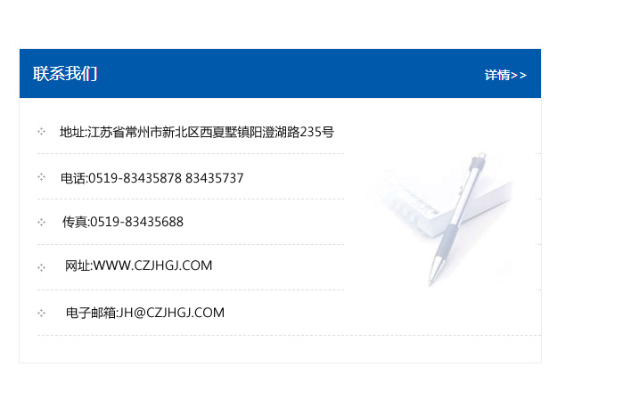 傳真:0519-83435688    郵編:213135    網址:WWW.czjhgj_com.shihanxm.com    電子郵箱:JH@czjhgj_com.shihanxm.com